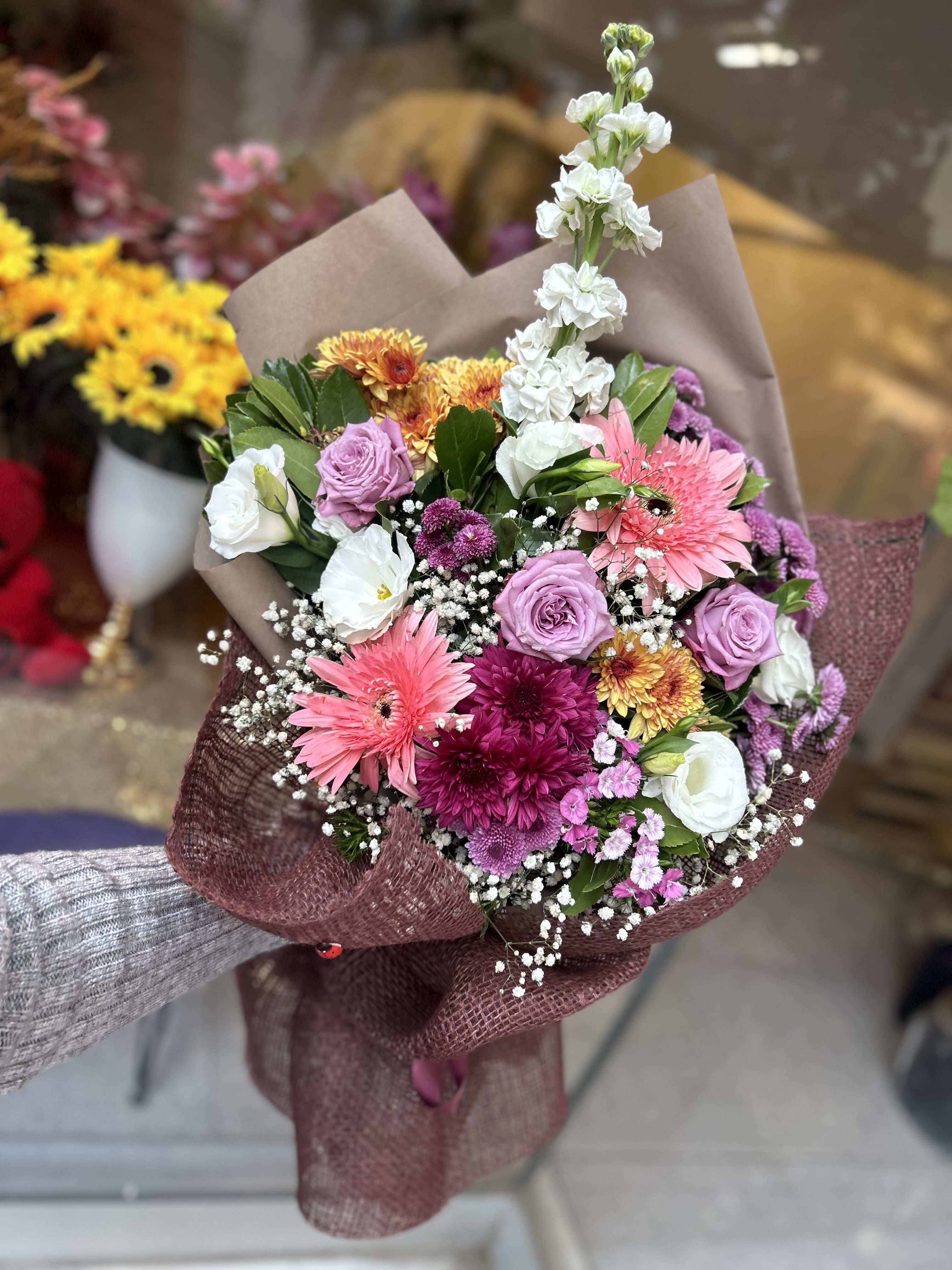 Çok şık kokulu mevsim çiçeklerinden hazırlanan butik bukettir. çok tercih edilen yeni sezon modeldir. Tüm özel günlerinizde tercih edebilirsiniz.Görüntüden taviz vermeden teslim edilmektedir. Çiçek içeriği mevsim şartlarına göre farklı çiçekle değişebilir.